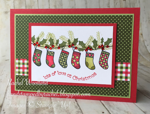 The holly leaf and leaf sprig are stamped in Mossy Meadow and Old Olive respectively. The background papers use are from the Heartwarming Hugs DSP, which is one of the packs available at 15% for all of October.