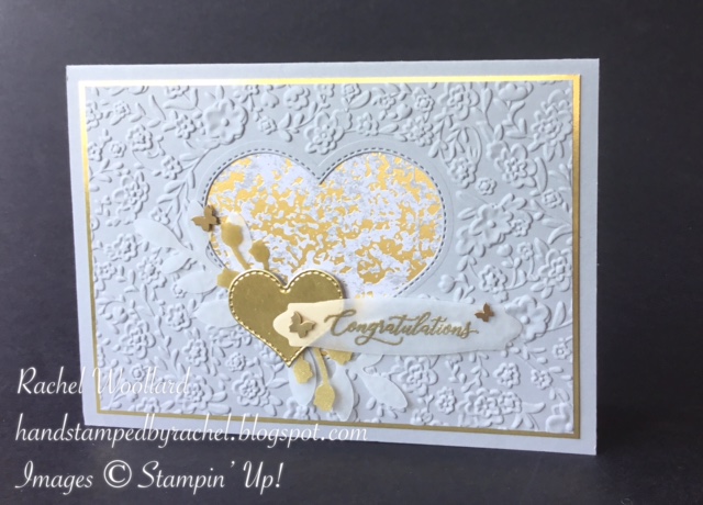 I gently applied some Versamark ink to the raised pattern on the heart and then applied Gold Emboss Powder and set with the Heat Tool.